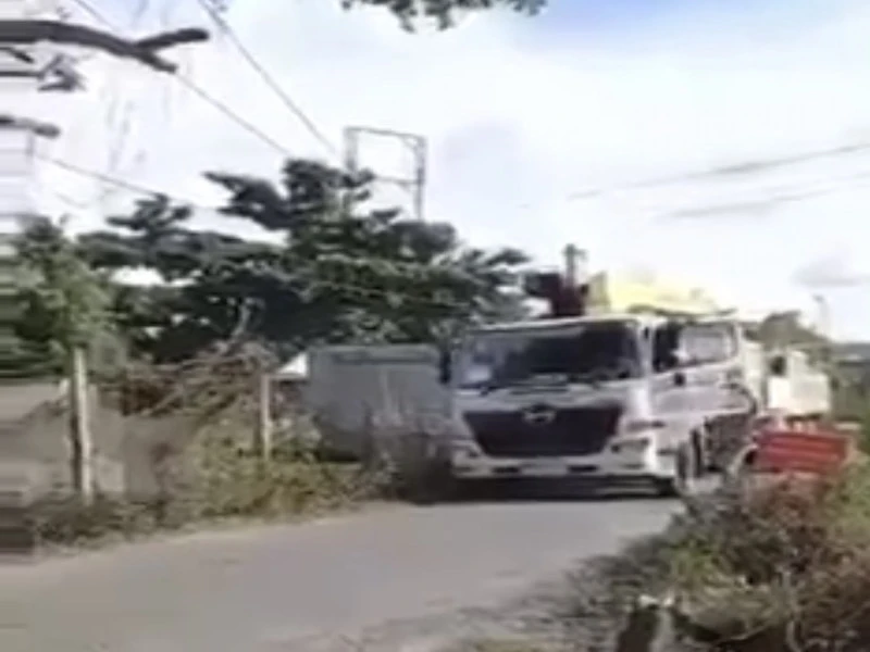 Chiếc xe tải được cho là vận chuyển cây cho Trưởng phòng Cảnh sát giao thông Trà Vinh. Ảnh: Cắt từ clip