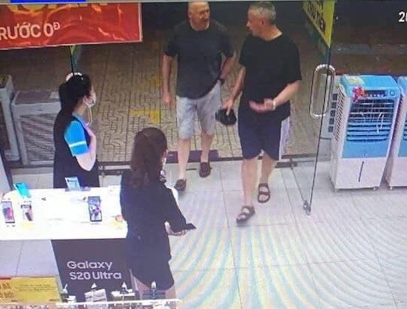 Camera ghi lại hình ảnh hai bệnh nhân người Anh đến siêu thị Điện Máy Xanh tại Đà Nẵng, nơi ghi nhận bệnh nhân thứ 35 mắc COVID-19. Ảnh: Điện Máy Xanh