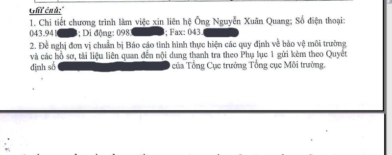 Thông tin thể hiện trong thông báo kế hoạch thanh tra do ông Quang ký, gửi cho các doanh nghiệp. Ảnh: TRUNG THANH