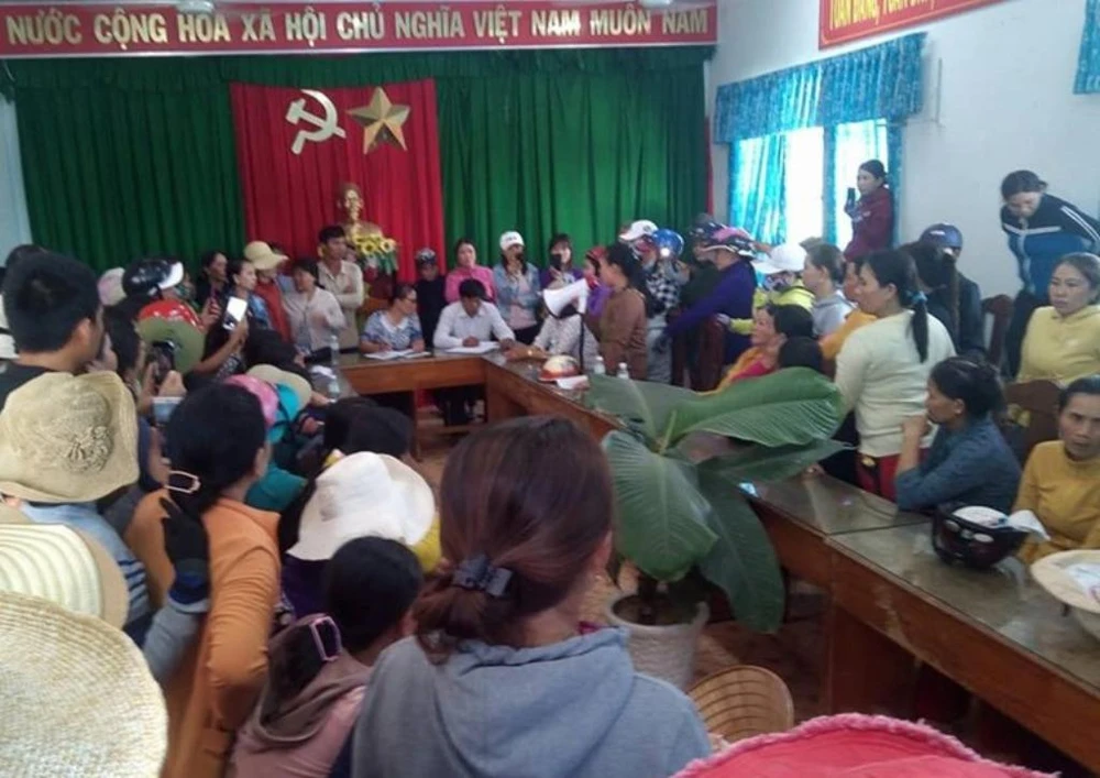 Lãnh đạo UBND huyện Vạn Ninh đối thoại với người dân nhưng chưa giải quyết dứt điểm sự việc.
