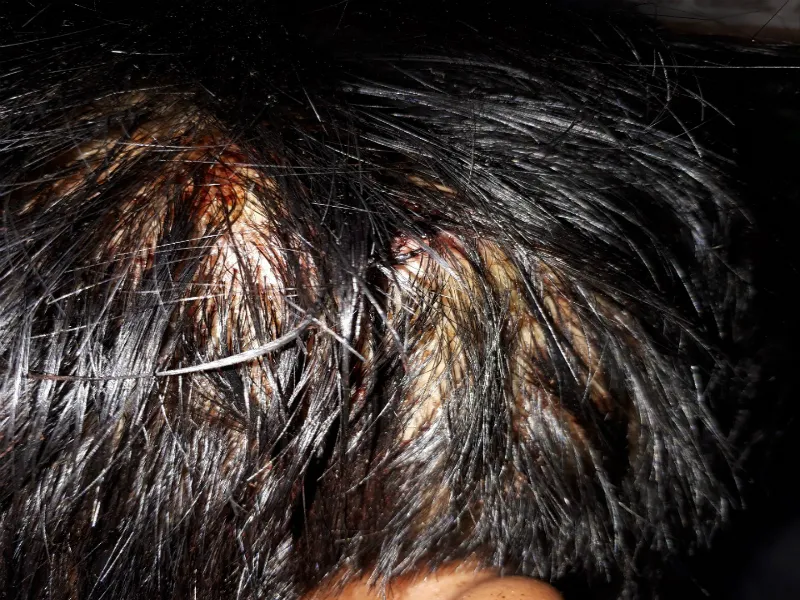 Hình ảnh vết thương ở đầu mà anh Út cho rằng bị công an đánh.