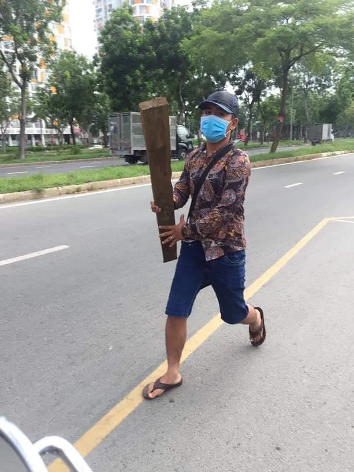 Người lạ cầm khúc gỗ tấn công anh M. Ảnh: FB