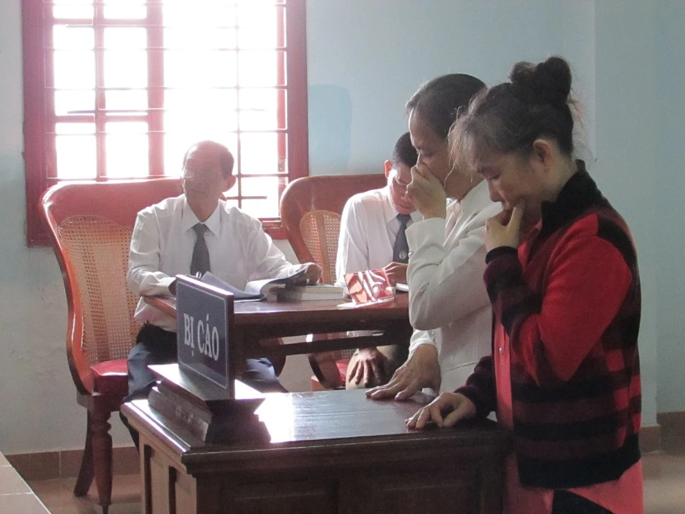 Hai bị cáo Tiến và Cẩm tại phiên tòa ngày 19-4. Ảnh: NN