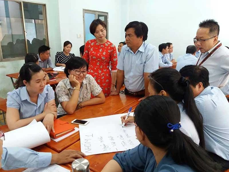 ThS tâm lý trị liệu Phạm Thị Thúy trong một buổi tập huấn nghiệp vụ. Ảnh: NVCC