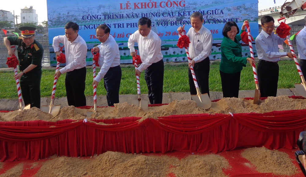 Sáng nay (29-12), tại lễ khởi công công trình cầu nối đường Võ Văn Kiệt với cầu Nguyễn Tri Phương, Phó Chủ tịch UBND TP Lê Văn Khoa chia sẻ: "Công trình sẽ giải quyết ùn tắc cho đường Ba Đình và từng bước giảm ùn tắc cho cả cầu Chánh Hưng, quận 8".