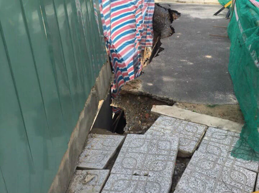 Khu vực bị lún, sạt lở nguy hiểm được chủ đầu tư chung cư cao tầng Marina Tower cảnh báo. Ảnh: VH