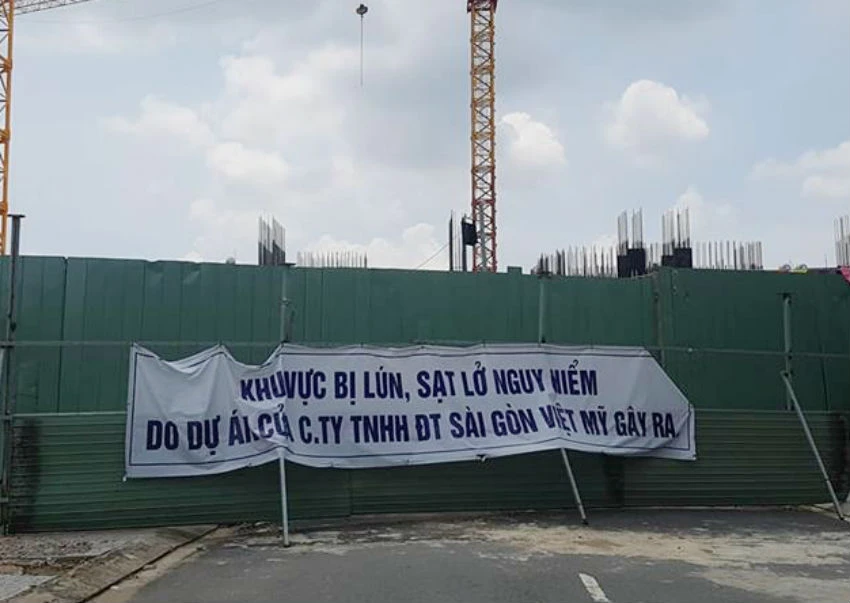 UBND phường An Bình cũng có biên bản xác nhận: Ngày 31-7 xác định công trình xây dựng chung cư cao tầng Marina Tower làm sụp lún khiến 4,5 m2 vỉa vè bị hư hỏng, bong tróc, có khoảng 12 m2 mặt đường nhựa có hiện tượng bị nứt xé, sụt lún; đá bị lở tạo thành hàm ếch rất nguy hiểm. Ngoài ra, gần công trình xây dựng chung cư đã xuất hiện vết nứt tại một số nhà dân. Việc thi công làm nứt nhà dân, phía Công ty Sài Gòn Việt Mỹ đã thống nhất với các hộ dân để khắc phục, sửa chữa.