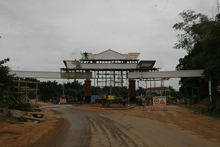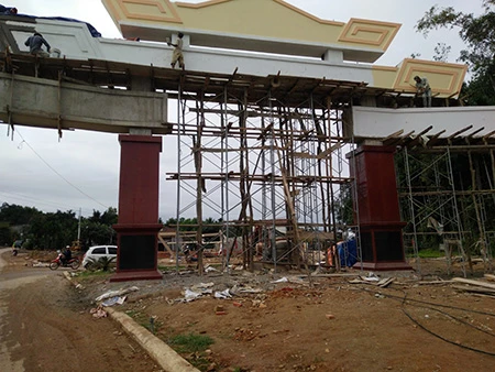 Hiện nay công trình cổng chào đã đi vào giai đoạn hoàn thành.