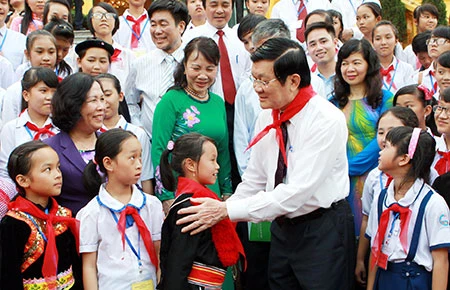 Nhân kỷ niệm ngày Quốc tế Thiếu nhi 1-6, chiều tối 29-5 tại Phủ Chủ tịch, Chủ tịch nước Trương Tấn Sang đã có buổi gặp mặt 55 em thiếu nhi tiêu biểu có hoàn cảnh khó khăn của 11 tỉnh, thành trong cả nước. Trong không khí thân mật, Chủ tịch nước căn dặn các em hãy vững tâm phấn đấu để đạt được ước mơ của mình, bên cạnh các em luôn có sự đồng hành của toàn xã hội.