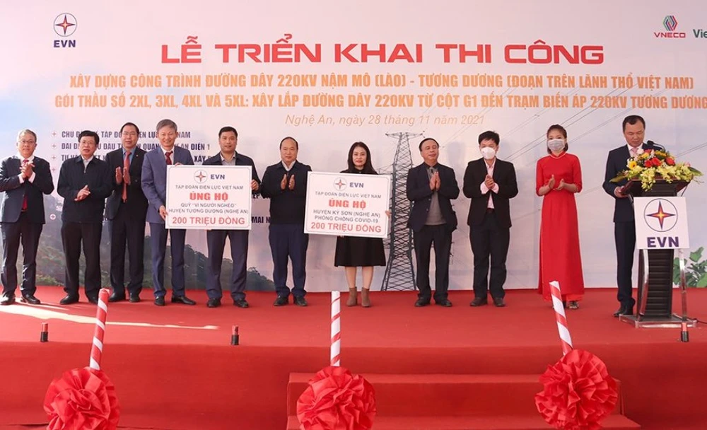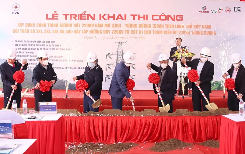 Ngày 28-11, tại xã Na Ngoi, huyện miền núi Kỳ Sơn (Nghệ An), Tập đoàn Điện lực Việt Nam (EVN) và Ban quản lý dự án Điện 1 đã tổ chức lễ triển khai thi công công trình đường dây 220 kV Nậm Mô (Lào)- Tương Dương (đoạn trên lãnh thổ Việt Nam).