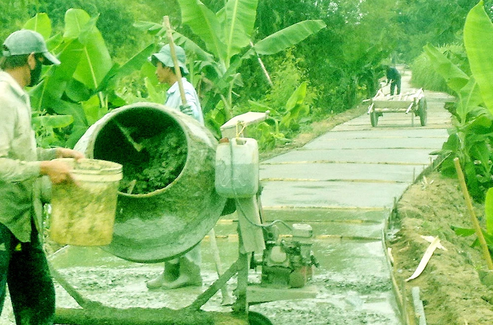 Thi công đường giao thông nông thôn ở thị xã Ngã Bảy - đơn vị cấp huyện đầu tiên ở ĐBSCL được công nhận nông thôn mới. Ảnh: CTV