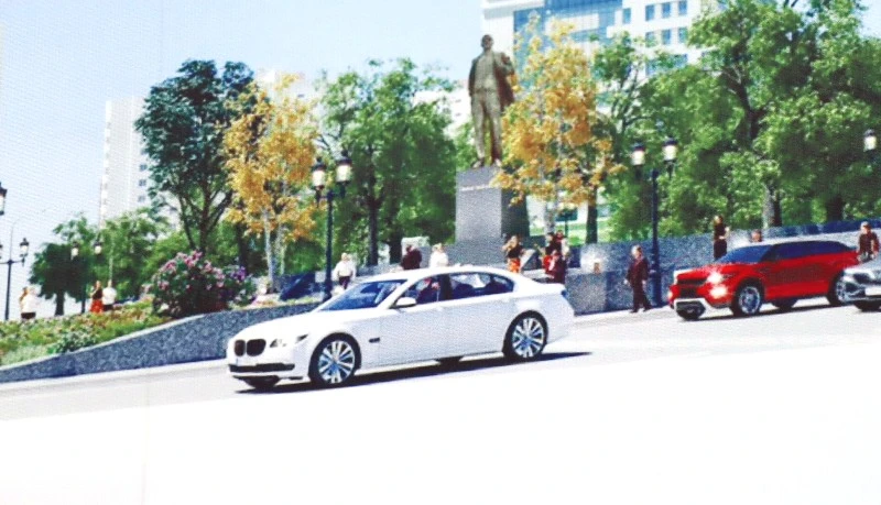 Phối cảnh đài phun nước và khu tượng đài Lênin, vườn hoa. Ảnh: ĐL