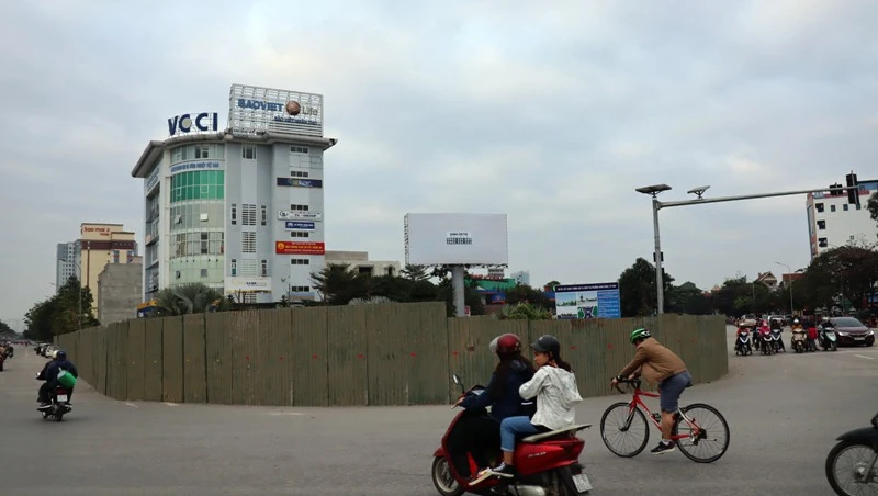 Chiều 19-2, tại khu vực xây dựng tượng đài (khu đất bên cạnh ngã năm hải quan, điểm giao nhau đường Lê Nin và đường Nguyễn Phong Sắc) đã được đơn vị thi công là Công ty CP Tân Thắng rào lại để thi công.
