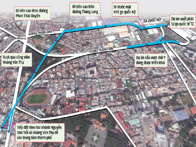 Theo đó, dự án sẽ làm đường trên cao (còn gọi là cầu cạn) kết nối sân bay Tân Sơn Nhất với đường Nguyễn Văn Trỗi - Hoàng Văn Thụ (quận Phú Nhuận), giúp tháo gỡ ùn tắc giao thông khu vực này. Cụ thể, hệ thống đường trên cao của dự án dài hơn 5.000 m và rộng 7,5-12,5 m tùy theo đoạn.