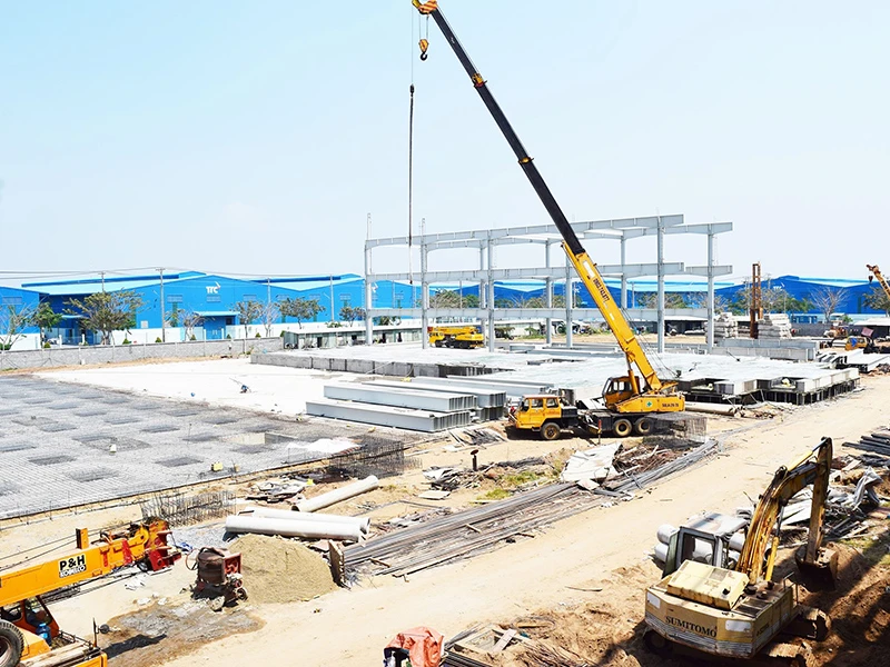 Các chủ đầu tư đang đẩy nhanh tiến độ thi công các KCN để đón nhà đầu tư ngoại. Ảnh minh họa: QUANG HUY
