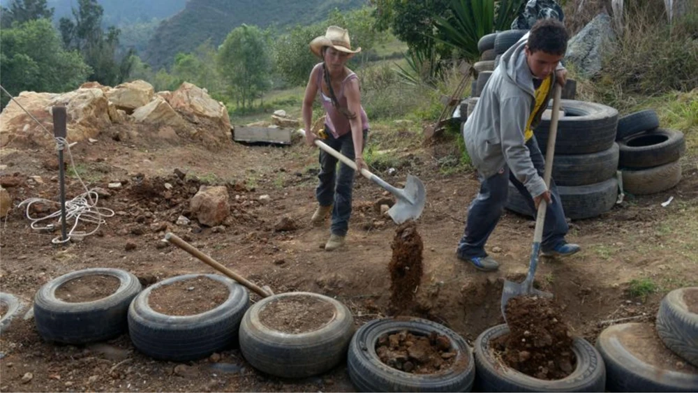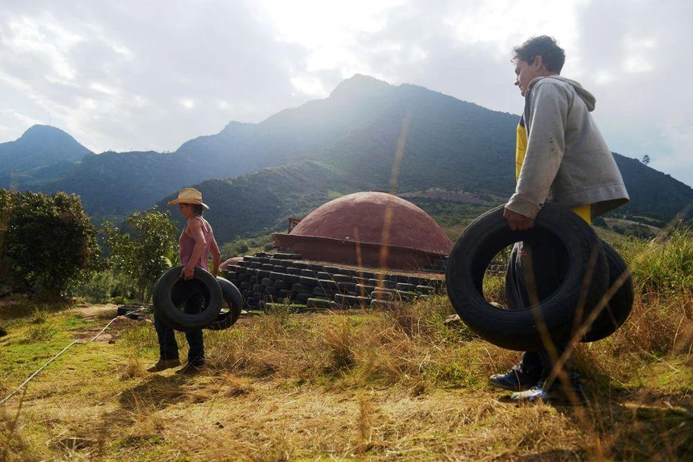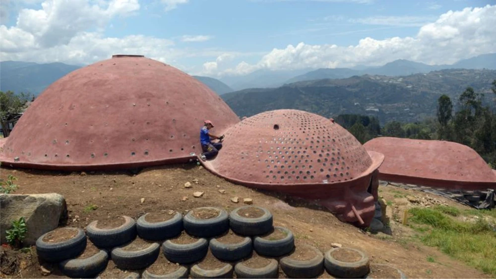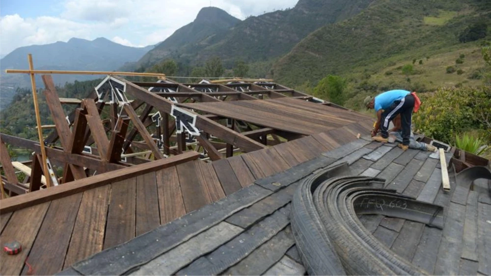 Người khởi xướng dự án này là cô Alexandra Posada, 35 tuổi, một người đấu tranh bảo vệ môi trường. Theo cô cho biết: “Vỏ xe phế thải bỗng trở thành một loại gạch vĩnh củu vì phải mất nhiều ngàn năm chúng mới phân hủy hoàn toàn”.