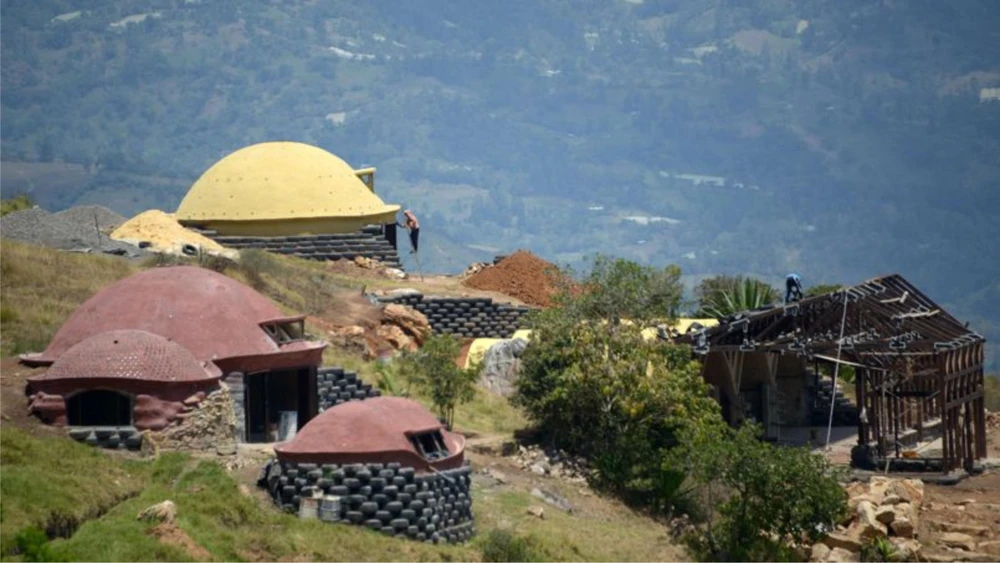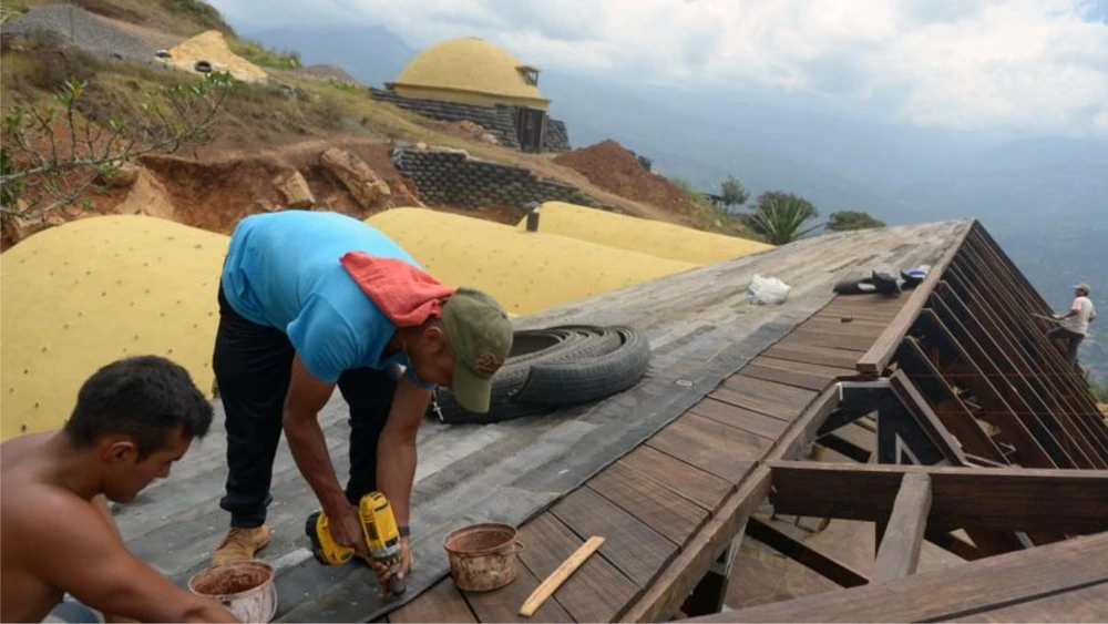 Đầu tiên, nhân công sẽ nện đầy đất vào từng chiếc vỏ xe để có được những khối “gạch” nặng 200- 300kg, rồi dùng những khung sắt hàn gắn chúng lại với nhau. Nhờ cao su có tính đàn hồi nên những ngôi nhà này tuy bám vào sườn đồi trên rặng núi Andes nhưng chúng chịu đựng được rất tốt những rung động mạnh của nền đất.