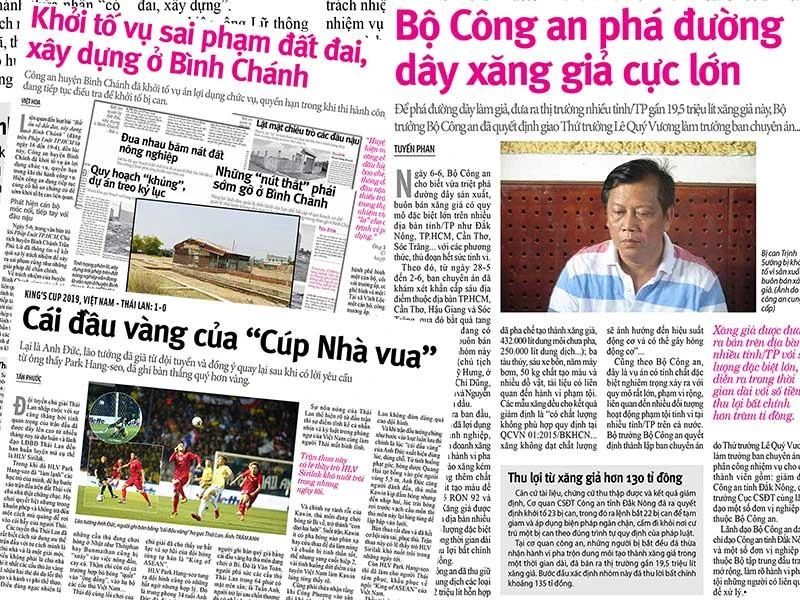 “Bộ Công an phá đường dây xăng giả cực lớn” cũng là bài viết nhận được nhiều phản hồi từ bạn đọc. Đường dây sản xuất, buôn bán xăng giả có quy mô lớn trên nhiều địa bàn như TP.HCM, Cần Thơ, Sóc Trăng… với hàng triệu lít xăng giả, thu lời bất chính hơn 130 tỉ đồng của đại gia Trịnh Sướng.