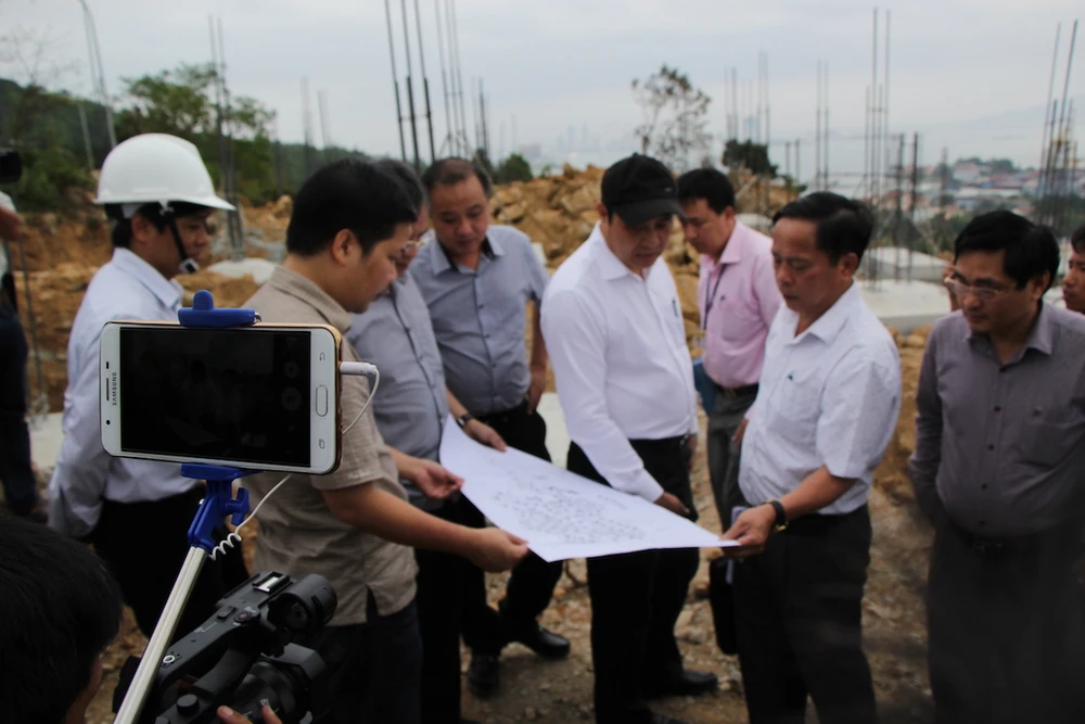 Lãnh đạo TP Đà Nẵng kiểm tra việc xây dựng 40 móng biệt thự của Công ty Cổ phần Biển Tiên Sa tại Sơn Trà. Ảnh: LÊ PHI