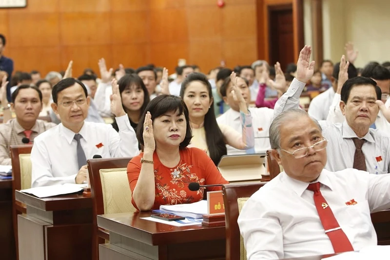 Các đại biểu HĐND TP.HCM thông qua nghị quyết. Ảnh: NGUYỆT NHI