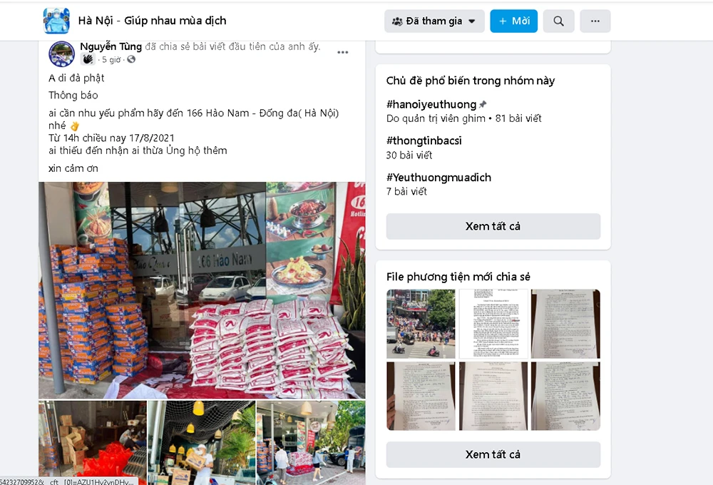 Trước đó vào sáng cùng ngày, một thành viên của nhóm Hà Nội – giúp đỡ nhau mùa dịch đã thông báo trong nhóm này về việc sẽ phát các nhu yếu phẩm vào 14 giờ ngày 17-8 tại địa chỉ số 166 Hào Nam.