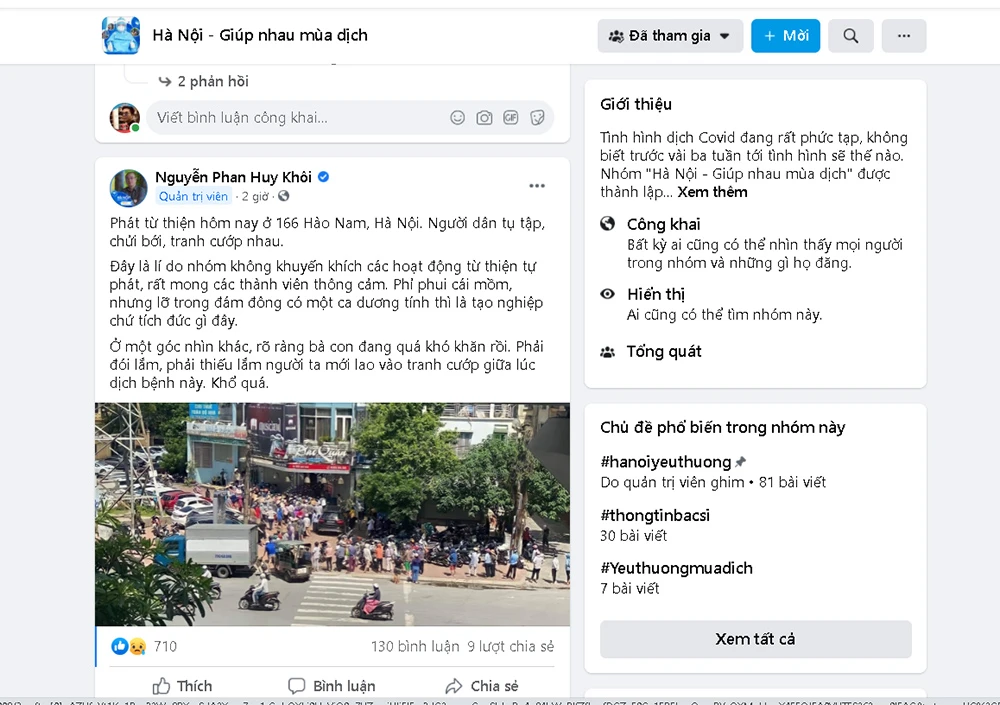 Sự việc được phản ánh trên nhóm Facebook Hà Nội - Giúp nhau mùa dịch