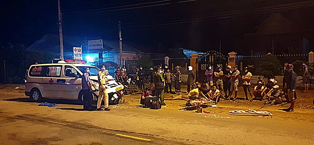 Trước đó, vào lúc 22 giờ ngày 10-7, tại Quốc lộ 55 đoạn qua xã Tân Hà, huyện Hàm Tân, xe cứu thương 86B 00900 lưu thông hướng từ thị xã La Gi về Hàm Tân đã va chạm với xe máy 86B7 33809 do anh ĐVĐ (25 tuổi, trú xã Tân Phúc, huyện Hàm Tân) điều khiển chạy hướng ngược lại.