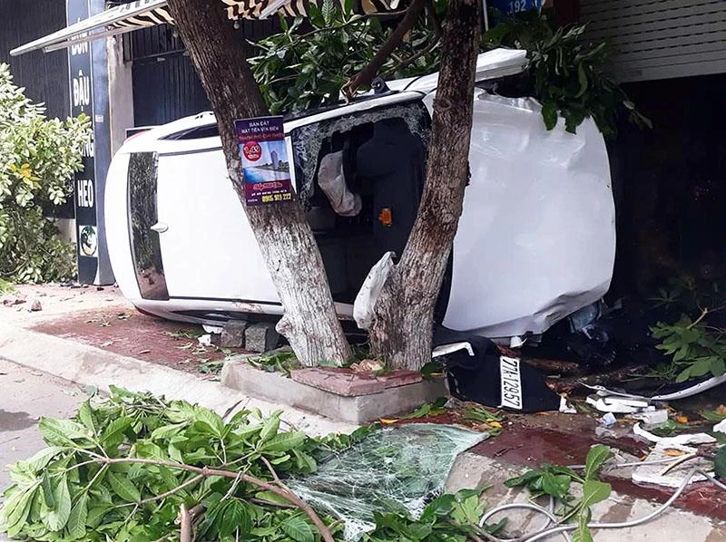 Thông tin ban đầu cho hay trưa cùng ngày, ô tô bốn chỗ 77A-129.57 do một nam thanh niên (chưa rõ danh tính) điều khiển, chở theo một nam thanh niên khác lưu thông trên đường Nguyễn Thị Định. Khi vừa qua khỏi ngã tư Nguyễn Thị Định - Lý Thái Tổ, chiếc xe bất ngờ tăng tốc rồi lao lên lề đường bên trái. Chiếc xe lao thẳng lên vỉa hè tông gãy cây lộc vừng trước nhà số 198 Nguyễn Thị Định, rồi tiếp tục lao thẳng đến cây lộc vừng trước nhà số 194 Nguyễn Thị Định, tông nát ghế đá rồi lật nghiêng, nằm kẹt giữa một cây lộc vừng và tường nhà.
