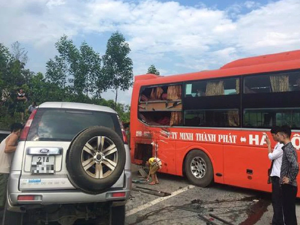 Trước đó, khoảng 15 giờ 20 ngày 11-5, tại Km 150+400 cao tốc Nội Bài - Lào Cai, đoạn qua địa phận tỉnh Yên Bái, một chiếc xe 7 chỗ hiệu Ford Everest mang biển kiểm soát 21A.xxx bất ngờ va chạm với xe khách giường nằm hãng Sao Việt mang BKS 29B.xxx chạy tuyến Hà Nội - Lào Cai.