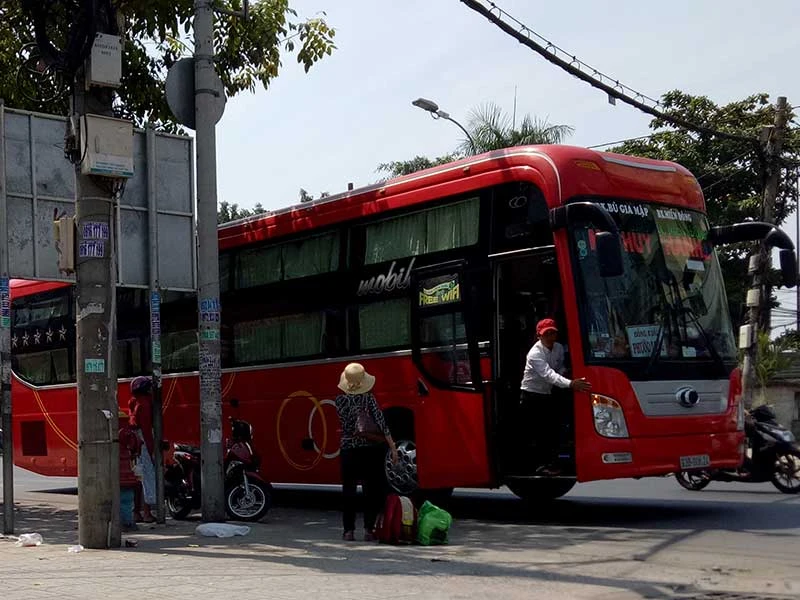 Xe rời bến miền Đông và rước khách ngay trước cổng. Ảnh: K.Cường