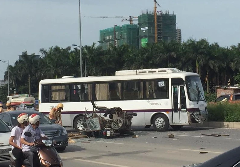 Vào thời điểm trên, một xe ba gác chạy ngược chiều với tốc độ cao đã đâm trực diện vào xe khách mang BKS 29B-073.55 đang đi đúng đường. Tiếp đó, một xe máy mang BKS 29E1-206.02 cũng đi ngược chiều, do không làm chủ được tốc độ nên đã đâm tiếp vào phía sau xe ba gác.