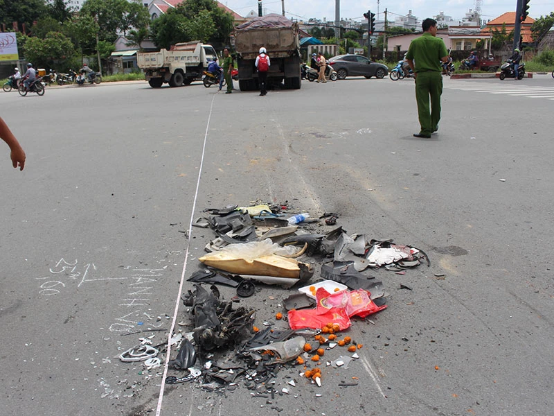 Theo quan sát, chiếc xe máy nằm lọt dưới gầm xe ben, nát vụn hoàn toàn. Trên đường còn có vết cày kéo dài hàng chục mét. Giao thông qua khu vực gặp nhiều khó khăn.