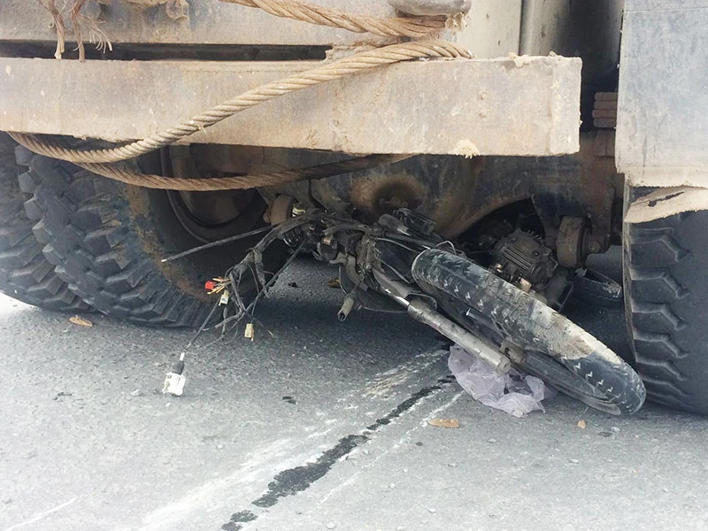 Xe tải sau đó cuốn xe máy vào gầm, kéo lê về trên đường hàng chục mét. Ông Quý bị thương nặng, phải nhập viện cấp cứu.