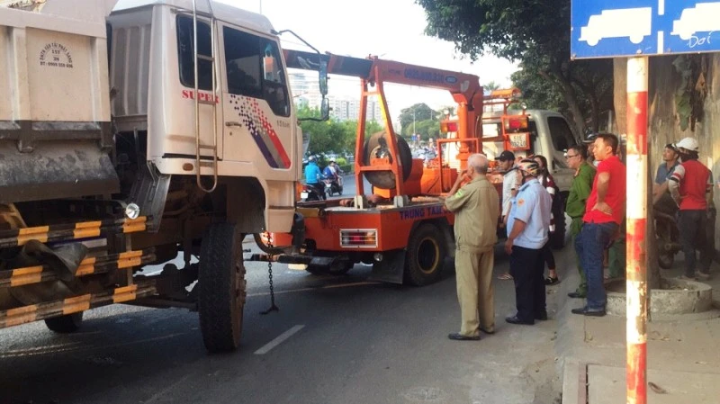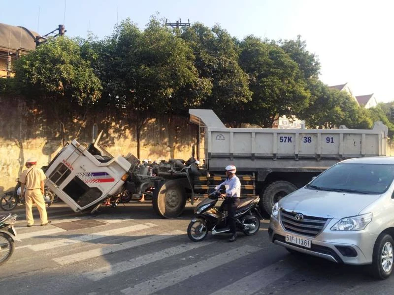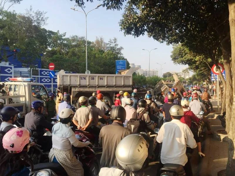 Tại hiện trường, chiếc xe nằm ngang giữa đường, cabin chúc xuống, giao thông qua khu vực ùn ứ nghiêm trọng. Do vào giờ cao điểm, sự cố xảy ra đúng vào thời điểm các trường THPT Trưng Vương và Mầm non Hoa Lư nằm trên đường Nguyễn Bỉnh Khiêm, quận 1 tan trường, nhiều phụ huynh đứng chờ chở con cháu về nên gây ùn ứ nghiêm trọng.