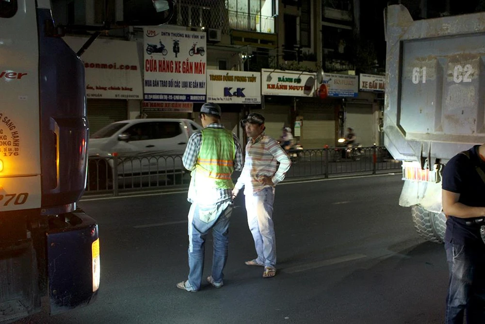 Theo Trung tá Hiếu, thông thường, khi tuần tra, xử lý ngoài đường, CSGT phát hiện kịp thời những xe ben chở đất nhão rớt xuống đường thì mới xử lý được. Còn các trường hợp tài xế không còn ở hiện trường thì CSGT sẽ thông qua hệ thống camera ở các giao lộ và hệ thống của Trung tâm hầm vượt sông Sài Gòn để phát hiện biển số xe, mời tài xế lên xử lý.