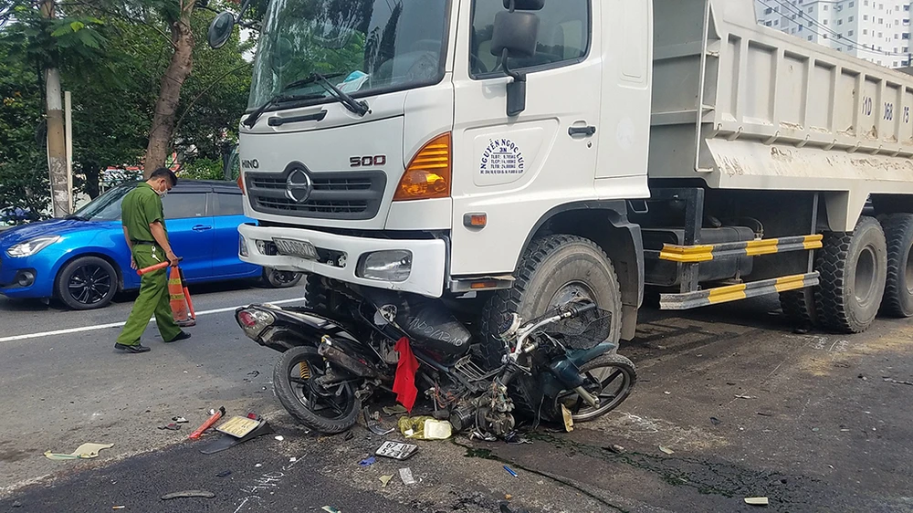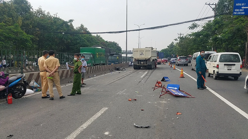 Công an quận Bình Tân, TP.HCM sau đó có mặt xử lý hiện trường, điều tra làm rõ nguyên nhân tai nạn.