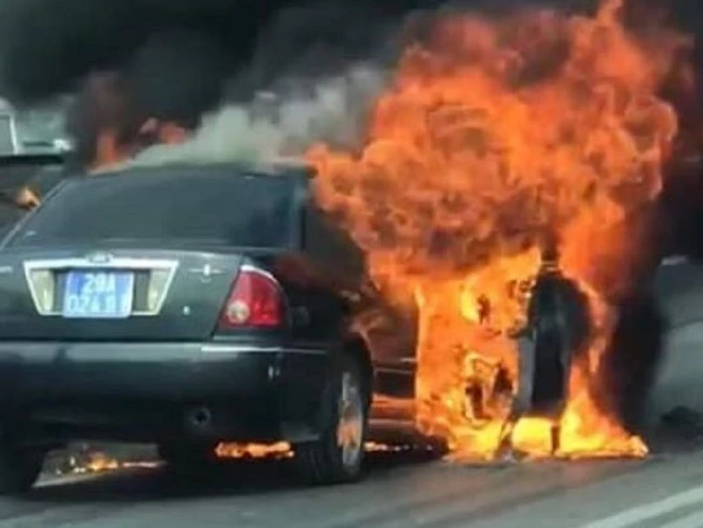 Thời điểm này, chiếc xe biển xanh 29A đang lưu thông hướng cầu Thanh Trì đi cầu vượt Mai Dịch, đến địa điểm trên thì bất ngờ bốc cháy dữ dội.