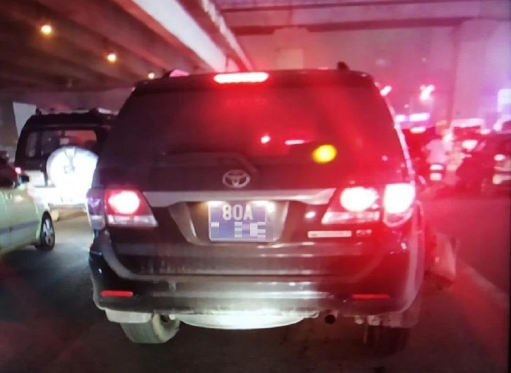 Chiếc xe biển xanh tại thời điểm gây tai nạn. Ảnh: Facebook