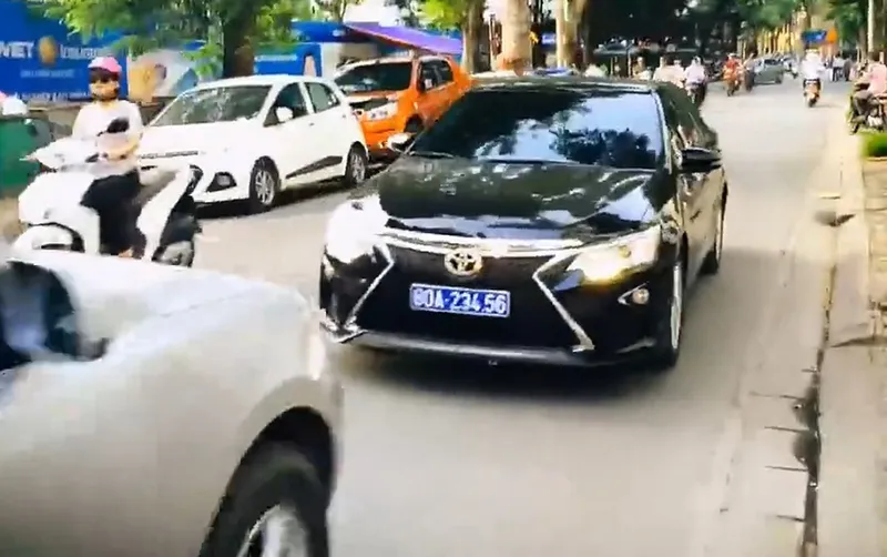 Ngày 13-9, trên mạng xã hội xuất hiện clip ghi cảnh ô tô Camry biển số xanh 80A-234.56 bị xe bốn chỗ buộc phải chạy lùi trên đường phố Hà Nội vì xe 80A lấn vào làn ngược chiều để lưu thông.