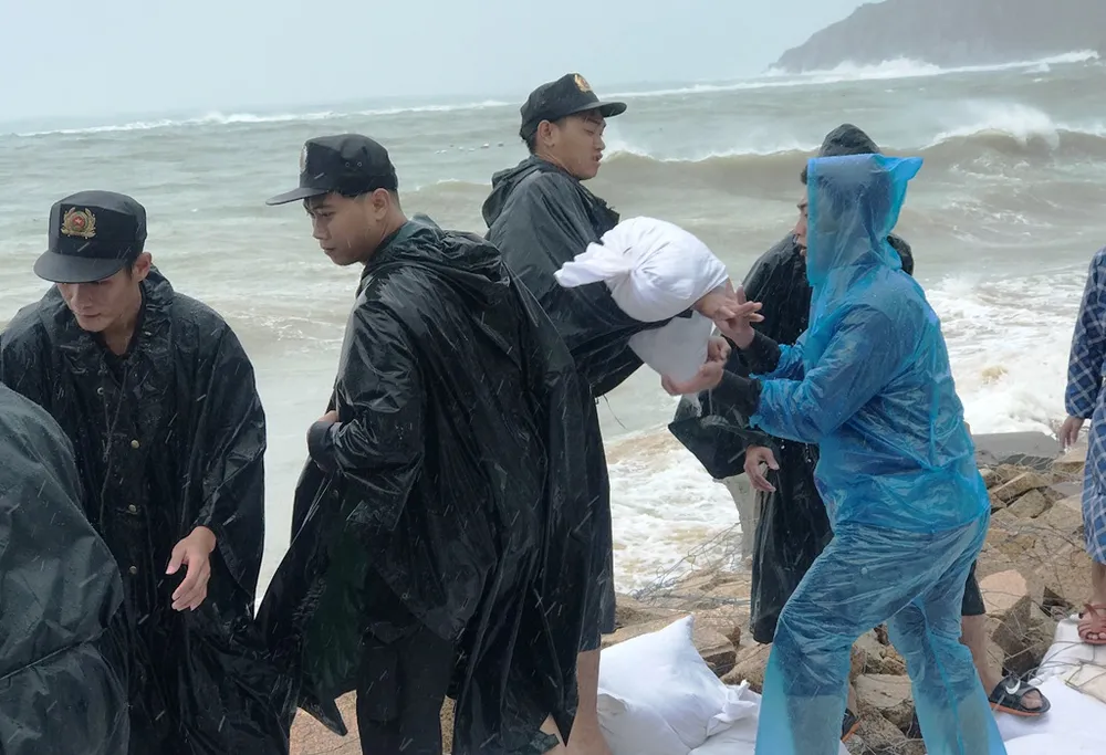 Cũng trong sáng nay, các lực lượng vũ trang của tỉnh Bình Định đã huy động các chiến sĩ đến giúp dân làm kè chống bão tại xã Nhơn Hải (TP Quy Nhơn). Xã này là nơi bị thiệt hại nặng nề trong cơn bão số 5 vừa qua.