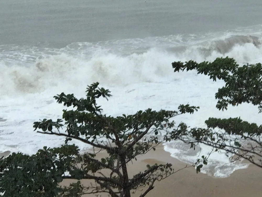 Những ngọn sóng biển cao dần bắt đầu cuốn vào bờ. Ảnh: HẢI HIẾU
