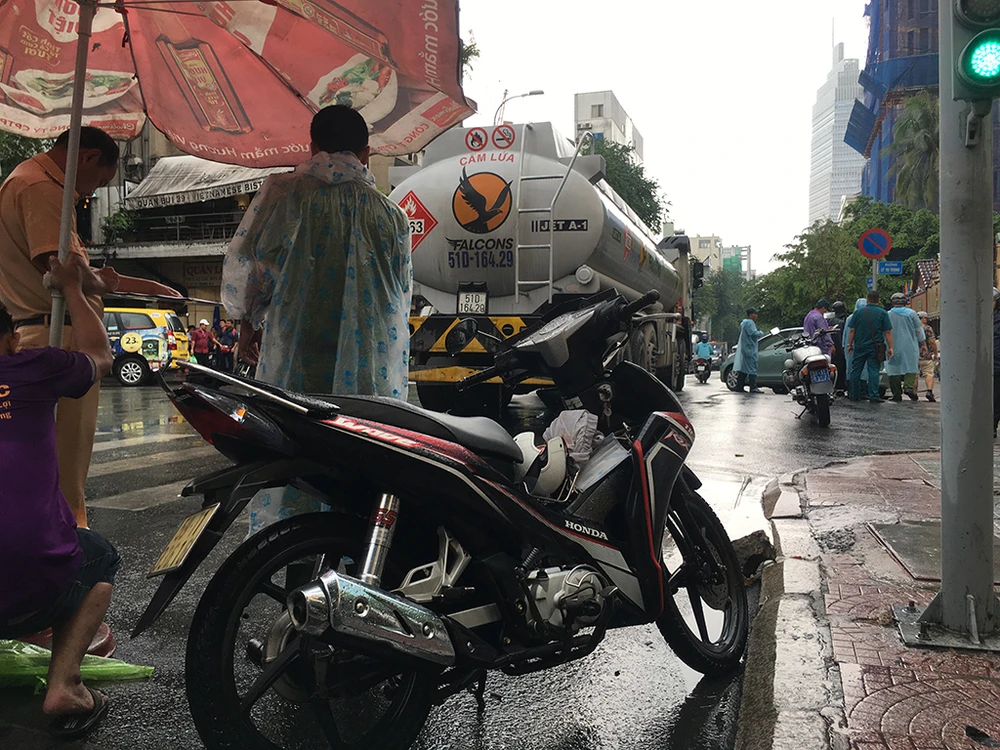 Khi gần đến ngã tư giao với đường Lý Tự Trọng (phường Bến Nghé, quận 1) thì va chạm với xe máy do nữ sinh tên Uyên (khoảng 18 tuổi) chở Nh. ngồi phía sau.