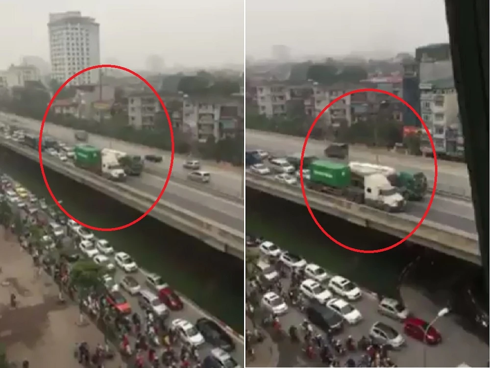 Theo người đăng tải clip này, vụ việc xảy ra vào ngày 29-3, tại tuyến đường trên cao vành đai 3, đoạn qua ngã tư Phạm Hùng - Khuất Duy Tiến (Hà Nội).