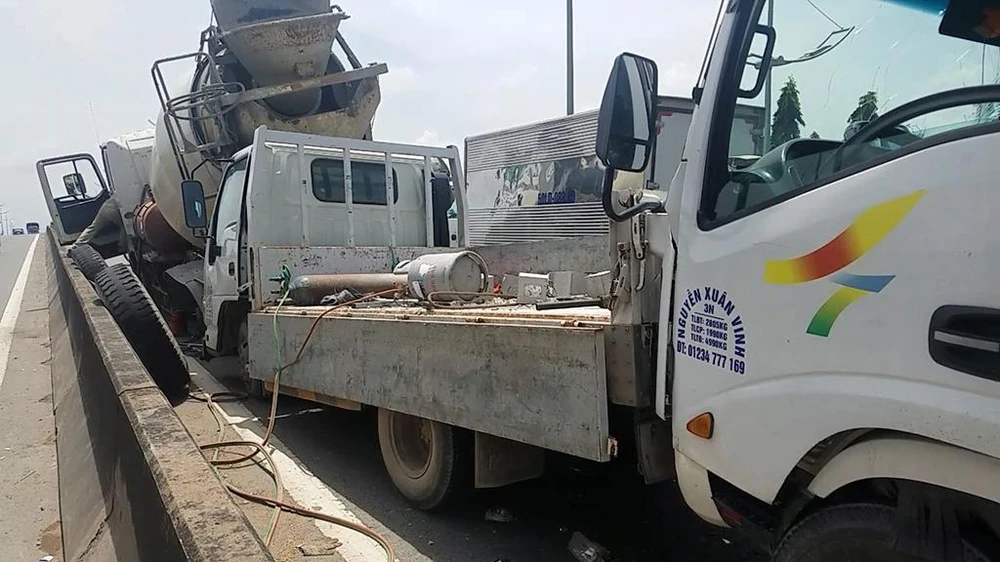 Lúc này, xe tải 1,9 tấn chạy trên đường Võ Trần Chí hướng từ đường dẫn Bình Thuận - Chợ Đệm đến, tài xế thiếu quan sát để xe tông thẳng vào xe tải của nhóm thợ, đẩy xe này lao về phía trước húc tiếp vào xe bồn trộn bê tông.