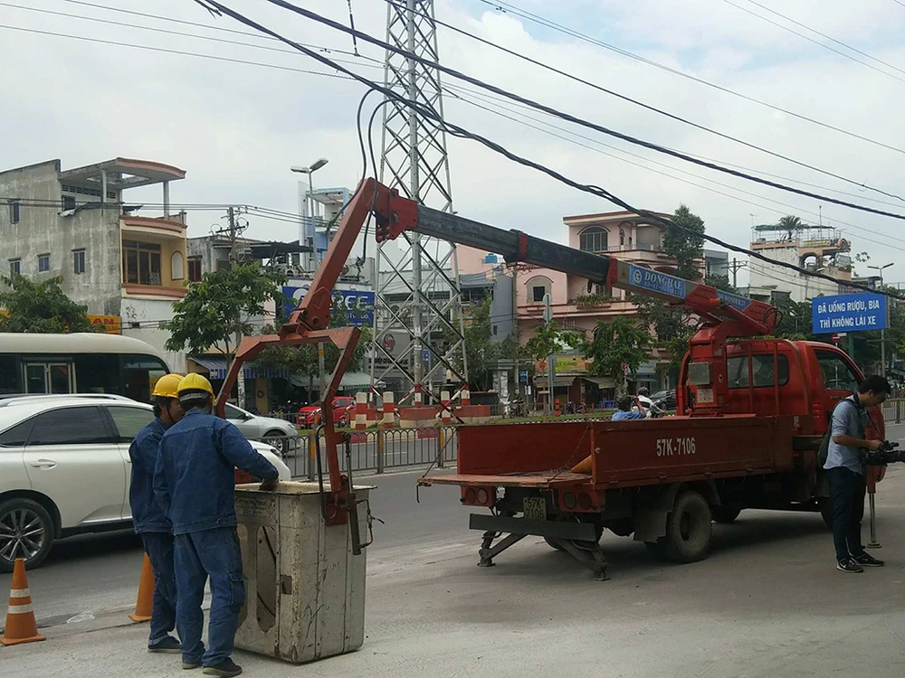 Lực lượng chức năng sau đó có mặt tiến hành khắc phục sự cố. Ảnh: H.TÂM