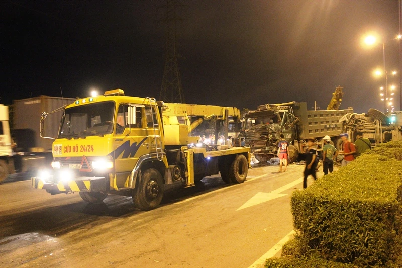 Đến 19 giờ cùng ngày, xe kéo được điều tới để di chuyển hai phương tiện khỏi hiện trường