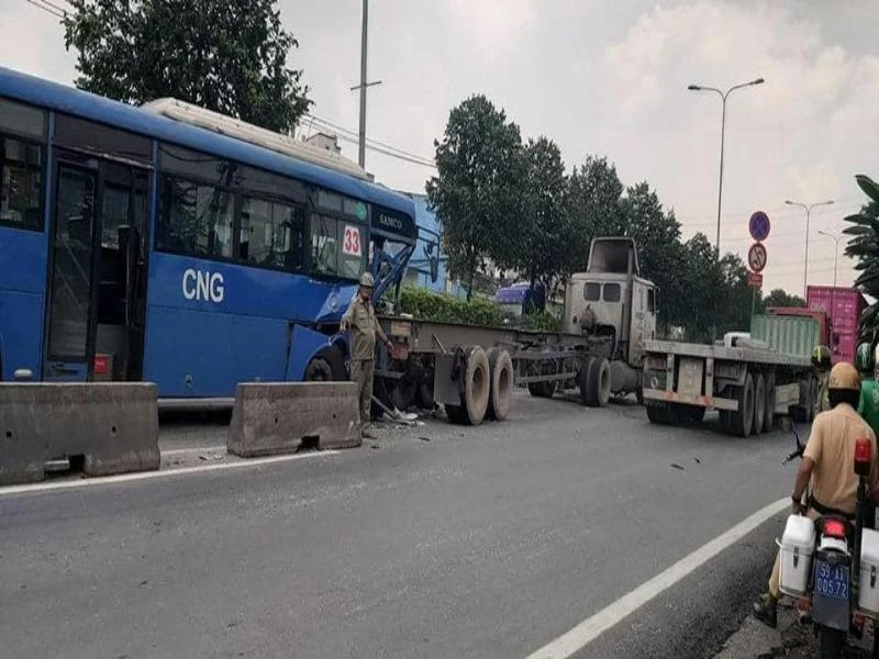Trước đó, trưa 30-9, trên quốc lộ 1 đoạn gần ĐH Nông Lâm TP.HCM (quận Thủ Đức, TP.HCM) đã xảy ra tai nạn giữa xe buýt và xe đầu kéo.