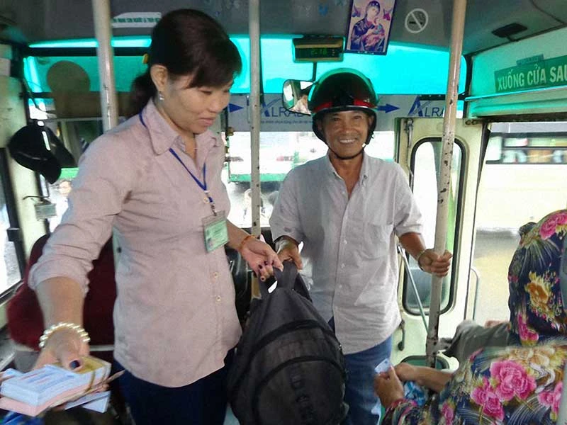 Trong bộ tiêu chí mới có đặt ra chuẩn lịch sự của tiếp viên là phải biết hướng dẫn, giúp đỡ hành khách đi xe buýt. Ảnh: LĐ
