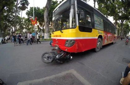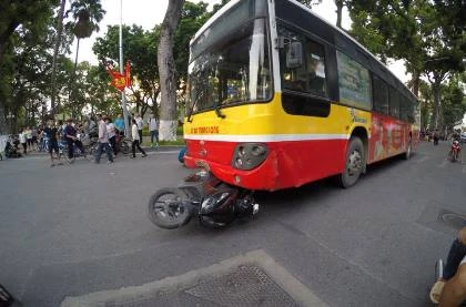 Các nhân chứng cho biết vào thời điểm trên, một xe buýt khi di chuyển trên đường Hàng Khay, gần hồ Gươm thì bất ngờ va chạm với ô tô bốn chỗ từ phía sau.