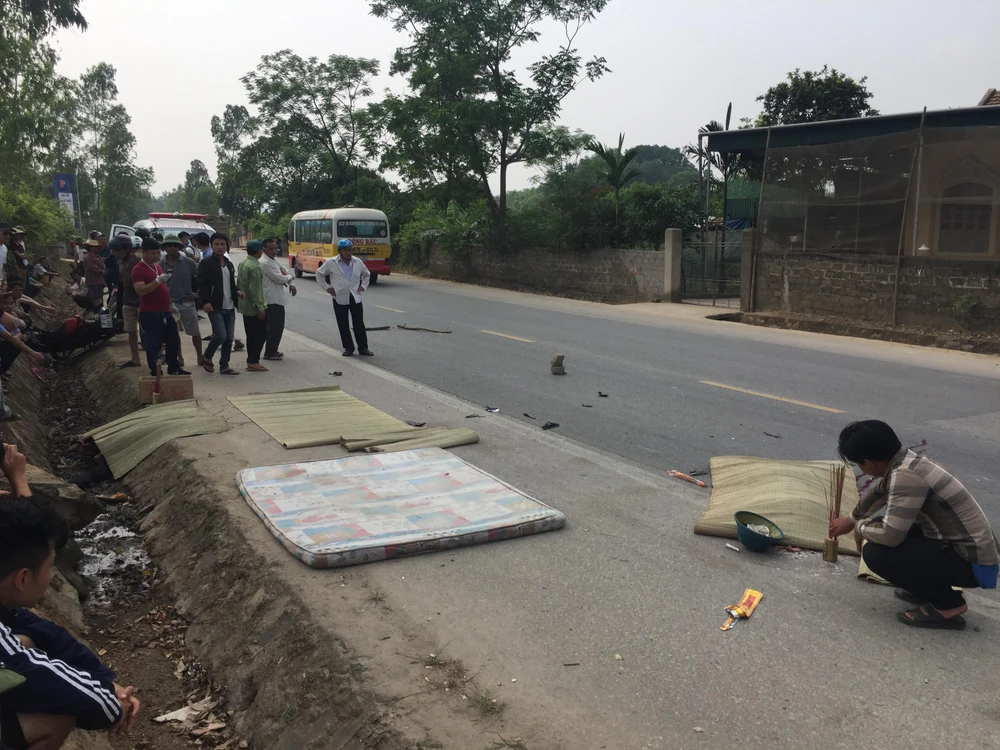 Tại hiện trường, một xe máy nằm trọn trong gầm xe buýt, chiếc xe máy còn lại văng xa hàng chục mét, rơi xuống mương thoát nước bên quốc lộ.